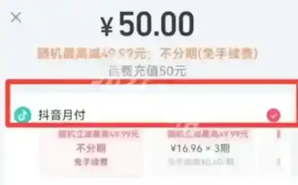 3、在抖音商城购物、充值话费、购买团购券或DOU+推广服务时,在支付环节选择“抖音月付”作为支付方式即可。
