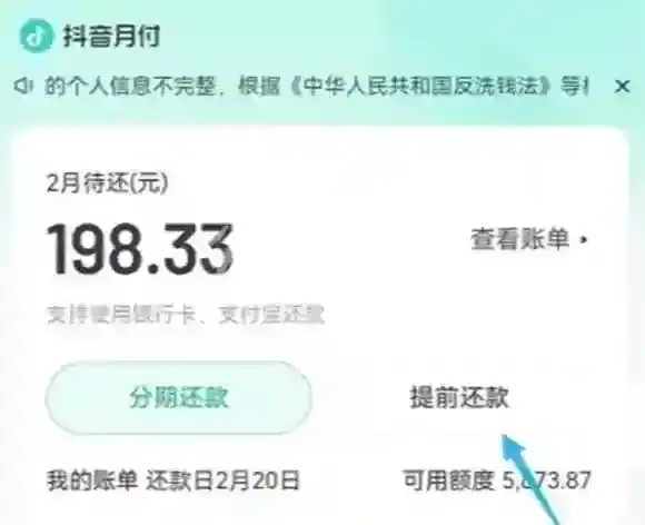 4、抖音月付设有固定的账单日和还款日,系统会在还款日自动从你绑定的银行卡扣款,你也可以选择主动提前还款。