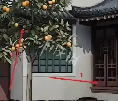 17、进入别雅园走左面,拿起地上的钩耙、烂枇杷和砝码,然后用钩耙够取树上的枇杷。