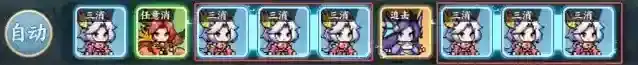 不过没关系,在游戏初期我们就提供了自动战斗的功能,会根据“凑三消”的原则自动进行消块,足够应付大多数战斗了。