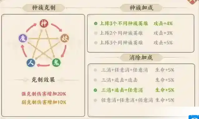 在战斗中、阵容调整和英雄详情等界面中,我们可以看到英雄有不同的消除类型。