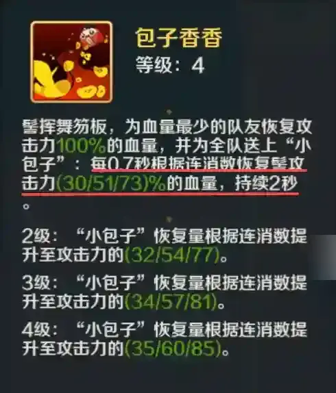 虽然她的消除技包子香香中也写到了会根据连消数为我方全体回复不同档位的生命值;