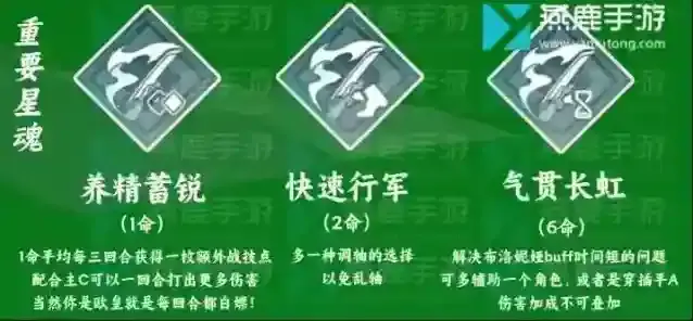 6魂:解决buff时间短的问题。能够多辅助一个角色或穿插平A,伤害加成不可叠加。