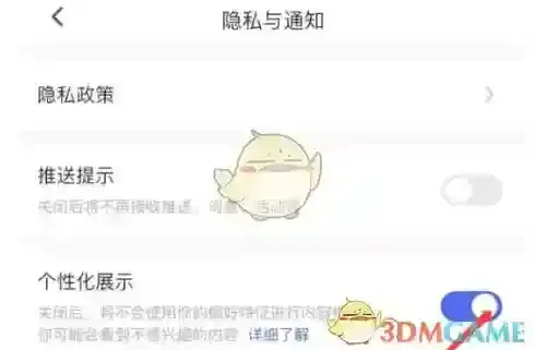打开稿定设计App,在主界面点击右下角“我的”,进入后选择“设置”,接着在设置界面点击“隐私与通知”,最后在新界面中点击“个性化展示”右侧的按钮,当按钮颜色变为灰色,即表示已成功关闭该功能。
