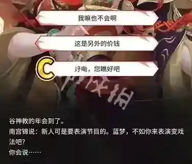 选择A(逗南宫锦开心)和B(鼓舞全体教众)都可以