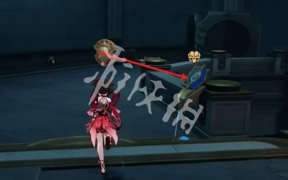 17、进来后,操作箭头处的机关,乘坐电梯上去。