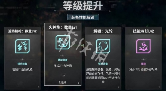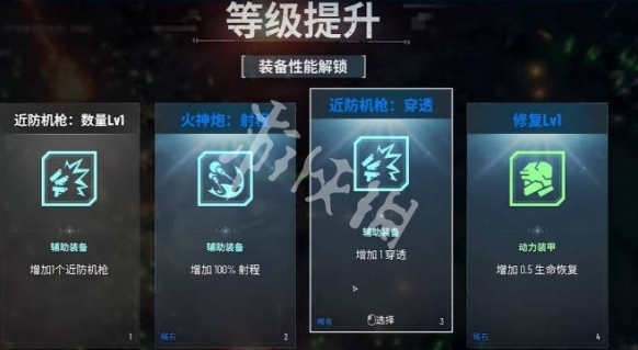LV30:火神炮:数量Lv1、近防机枪:穿透、卫星射线:频率、散射机枪:穿透1
