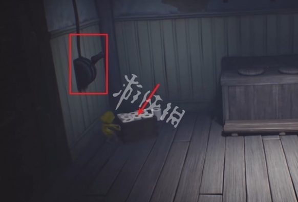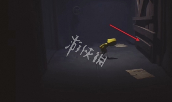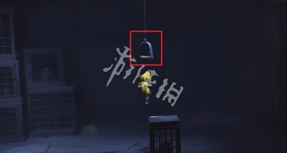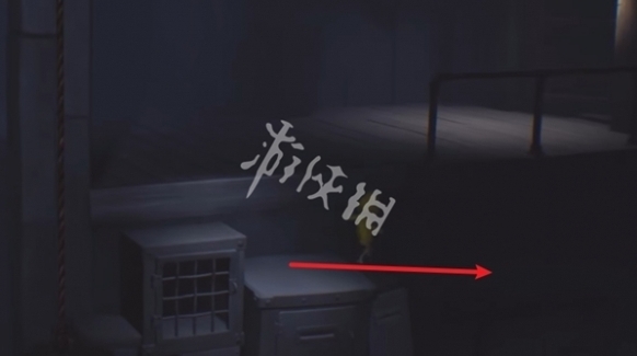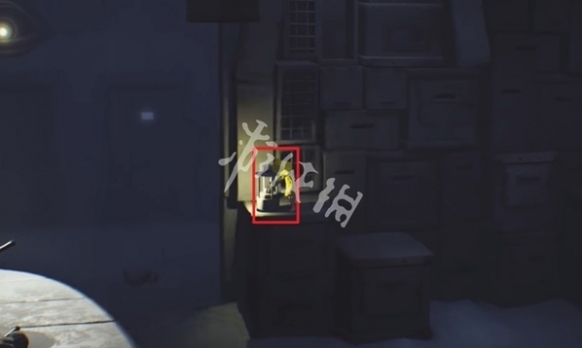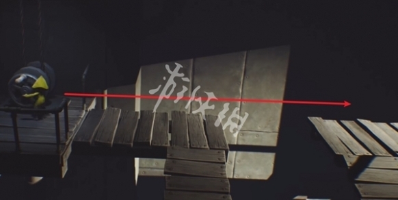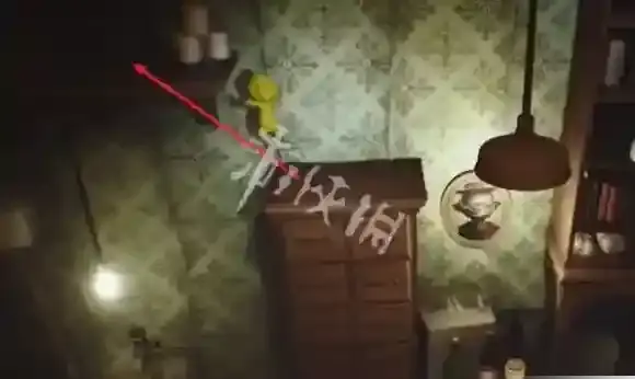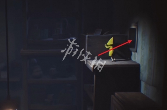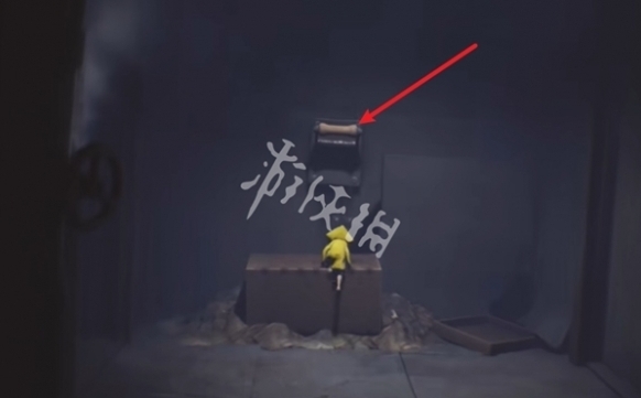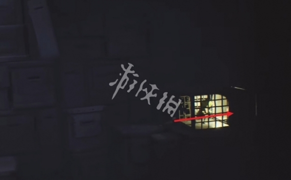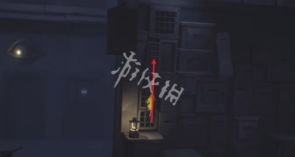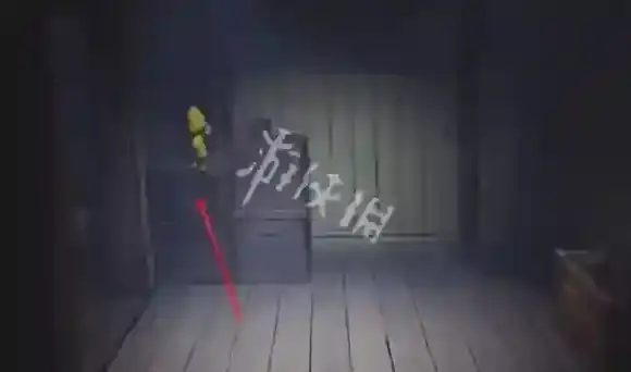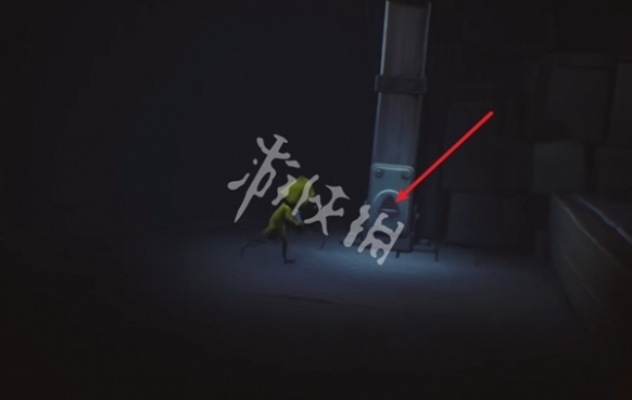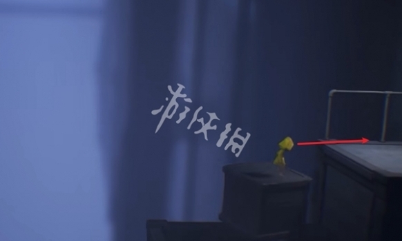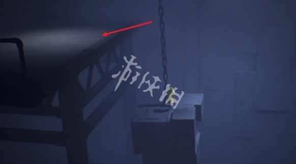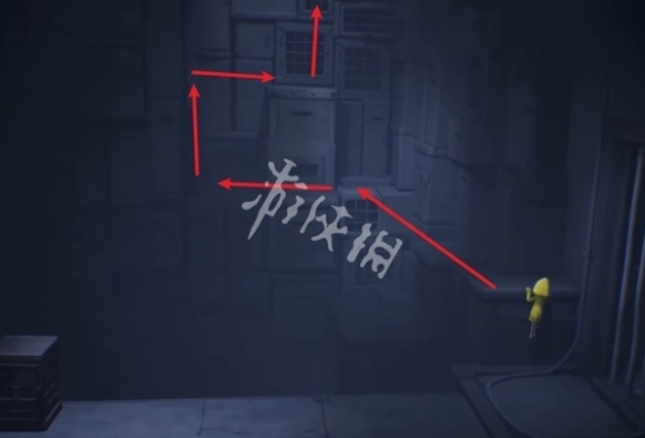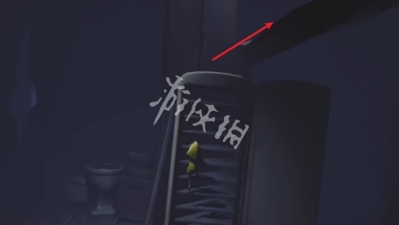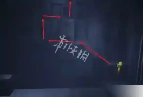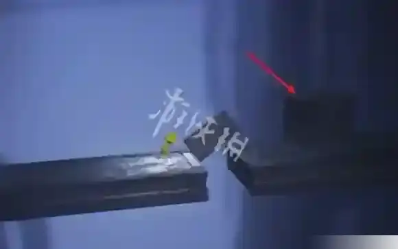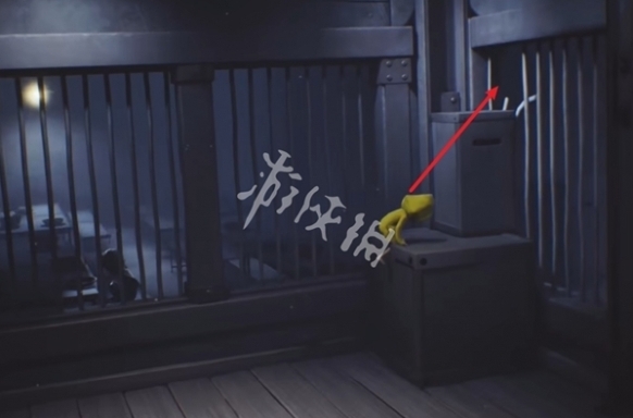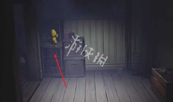 22、走到图中的位置,顺着箭头处的物体往上爬。