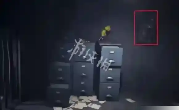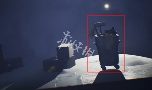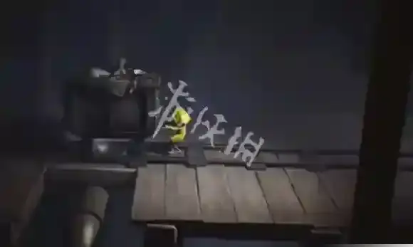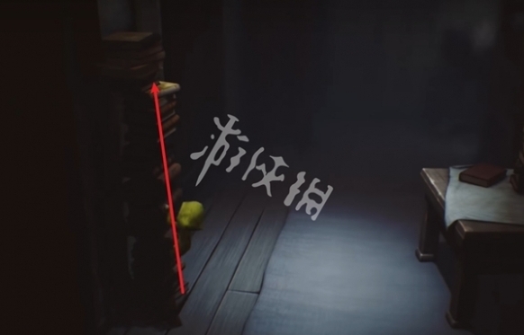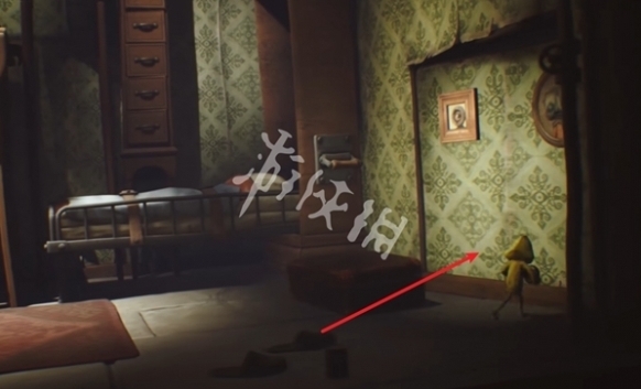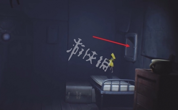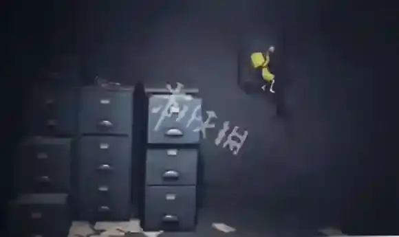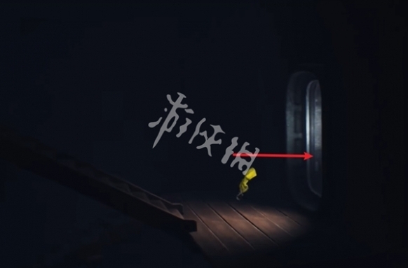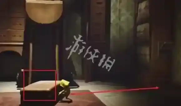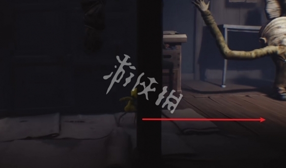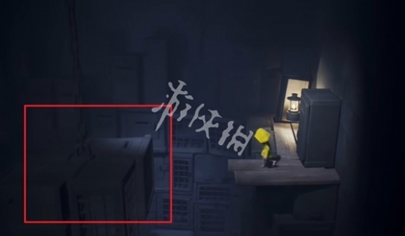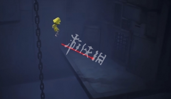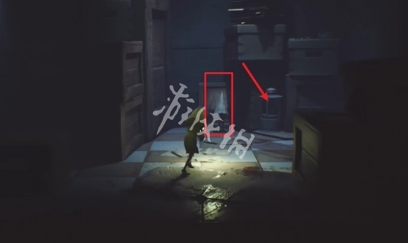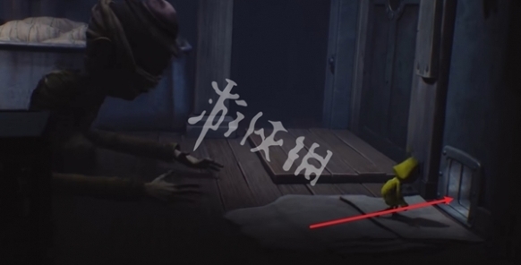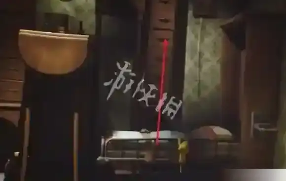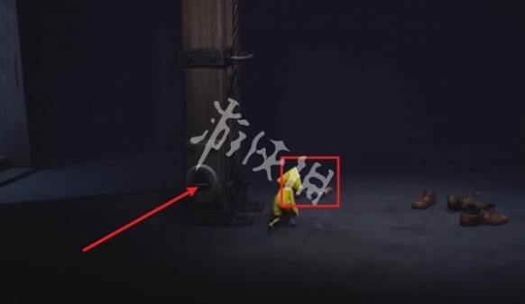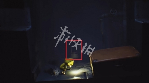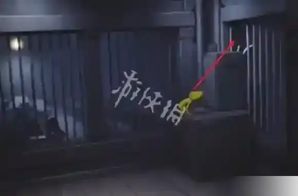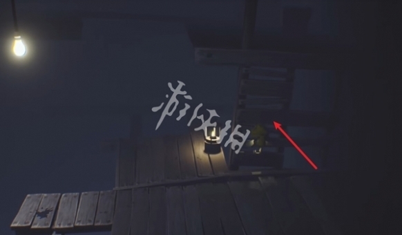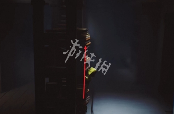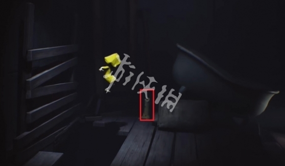 22、走到图中的位置,顺着箭头处的物体往上爬。