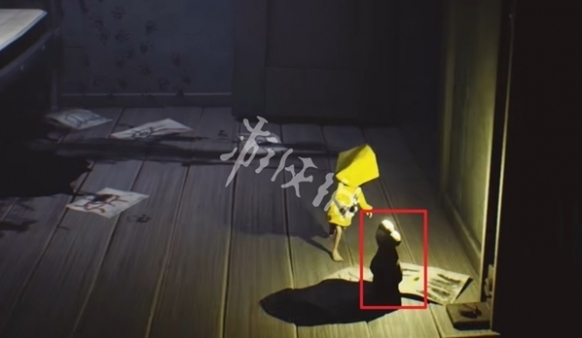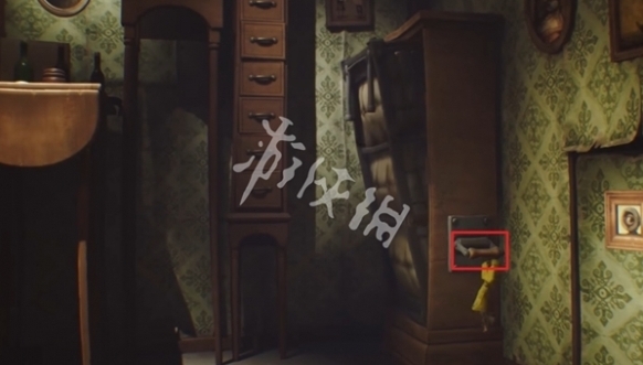 25、关上门后,拖动箭头处的物体,借助来关上方框出的开关。