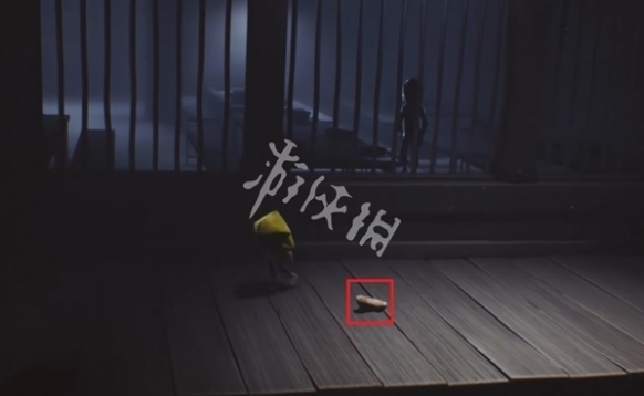 37、走到图中的位置,牢笼里的人会扔一个肉出来,让人物食用。