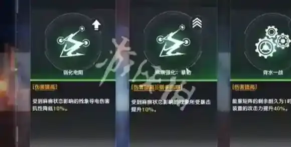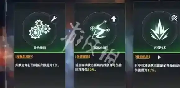 2、开始的三个随机的增益主要选择导电类的,首先在左边放三个雷枪。
