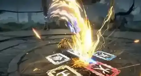 在进行下劈的时候可以打出五彩流光特效和原作中帝皇斩的五行特效,可以说就特效来看不说完美还原原作也是将元素完美的和技能进行了融合,此外非变身模式下的岳山外观也是会发生一些改变的。