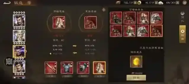1.调整装备随机到的不合理词缀。比如武将的武器随机到了加精神,法师的衣服随机到了加攻击,这些都相当于是浪费了装备的词缀。而我们通过装备转换石,就可以把加攻击和加精神词缀转换给合适的装备,如图