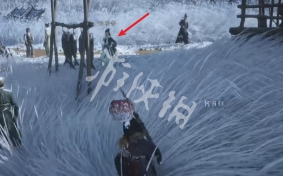 往箭头处的房子走,在房子附近找到何当归进行对话即可。