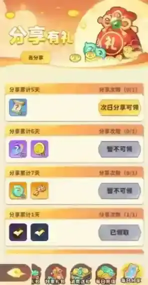 分享有礼,完成7天分享任务,可白嫖108仙玉及各种材料