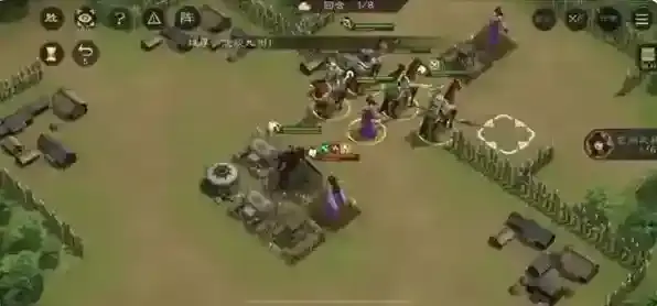 第一回合,夏侯渊,黄忠先后群攻曹仁,把四个弓箭手血量压低,其他人再打一下小兵,关羽二动收人头,如果剩一个弓箭手也无妨。