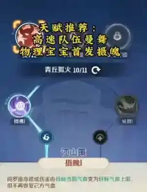 4、盘丝洞天赋建议选择曼舞和摄魄,左一天赋选择摄魄一,阎罗追命可以给目标造成气血上限的伤害,该天赋让盘丝洞也有了一定的输出能力。