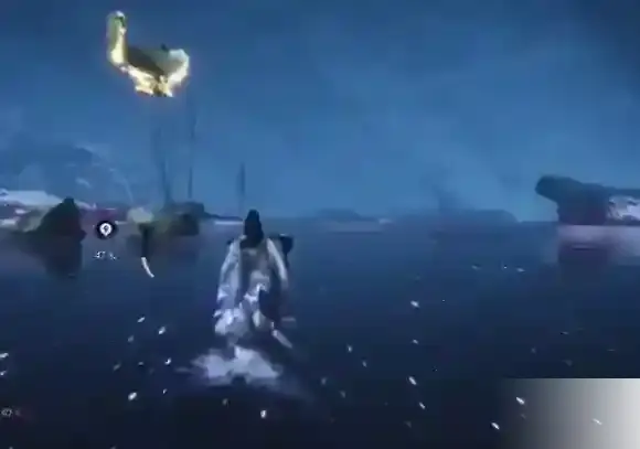 2、然后可以在前方的水上看得到。