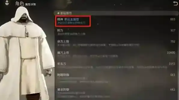 主属性为装备属性上第一排的属性,以上图为例精神即是治疗职业的主属性,所有的治疗职业装备都具有精神和耐力这两条属性且数值固定随着装等提高而提高。防护职业的主属性为力量,枪术师和格斗家的主属性为敏捷,弓箭手的主属性为灵巧,咒术师和秘术师的主属性为智力。主属性决定了一个职业的攻击力以及治疗效果。