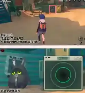 传送至下层区域,然后与面前的NPG(流浪邦布)对话,完成小游戏修复流浪邦布发生的故障后可以盖这个奖章。