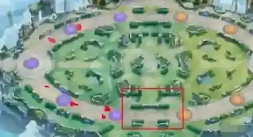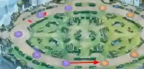 3、让队友站至图中的红色方框处,并且抢夺该处的野怪,之后再去箭头处投分。