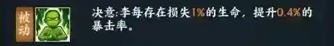 被动:这个被动效果可以把损失生命转化为暴击率,也就是说损失的生命越多,暴击率也就越高,最高暴击率应该可以达到30%-39%左右。总的来说,这是一个爆发型被动,配合上一个被动,会让敌人极为痛苦。