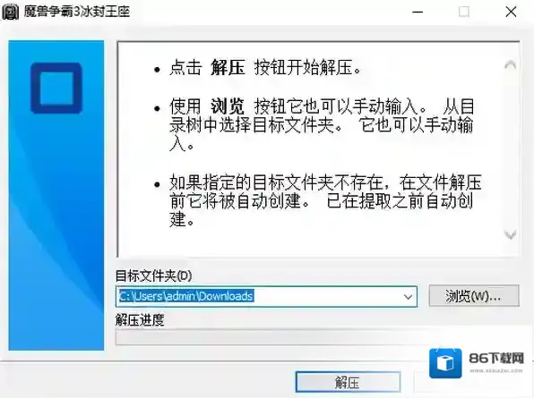 3、游戏下载好以后,打开游戏安装包所在的文件夹,然后双击安装包,接着选择一个纯英文的安装目录,最后点击解压按钮。