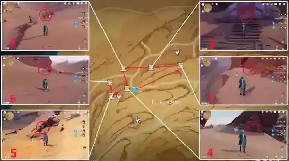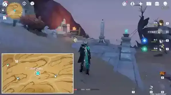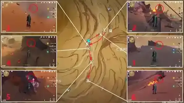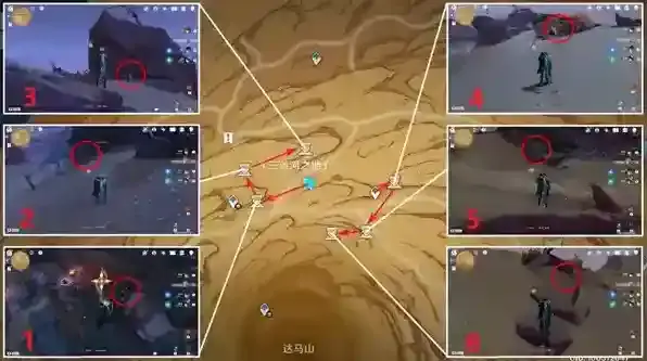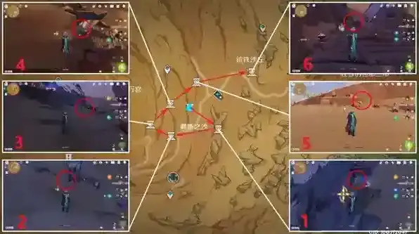 (2)在千壑沙地的地图中,有8处元能尖碑,与元能尖碑交互,会在地图上标记圣章石