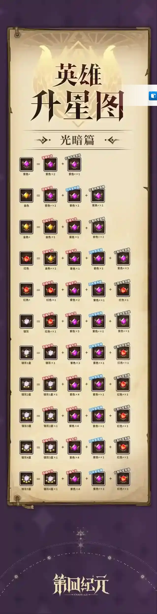 在前期获得了紫色光暗英灵后,不必都用出去,可以攒起来四合一,获得紫色+光暗英灵