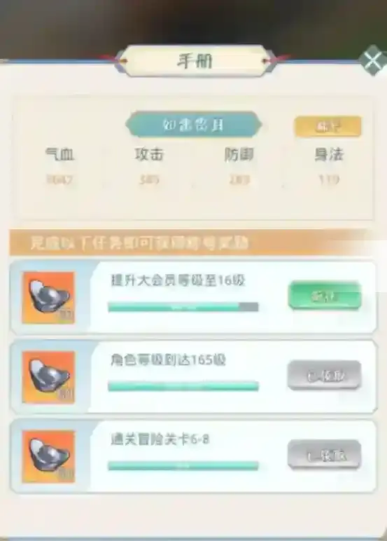 冒险、绿林、戏台:根据自身属性尽量提高后,每日获取鸡腿。