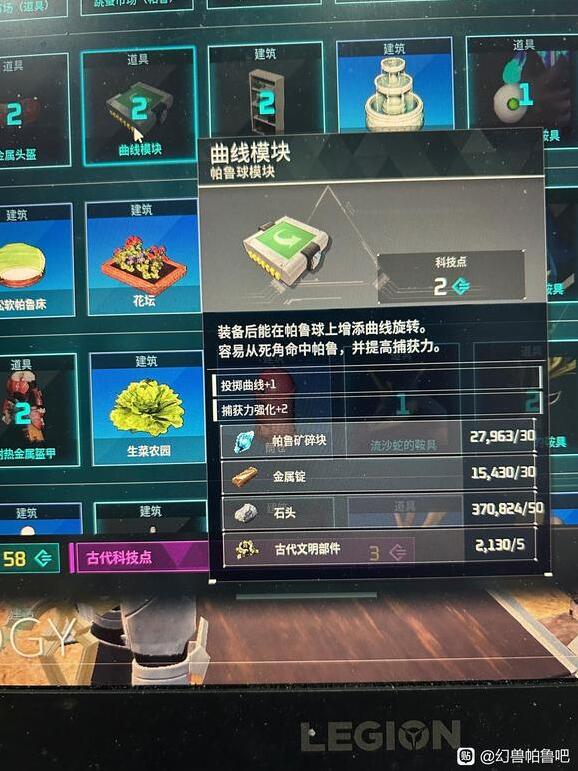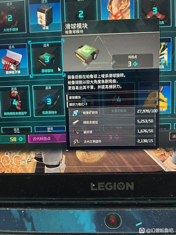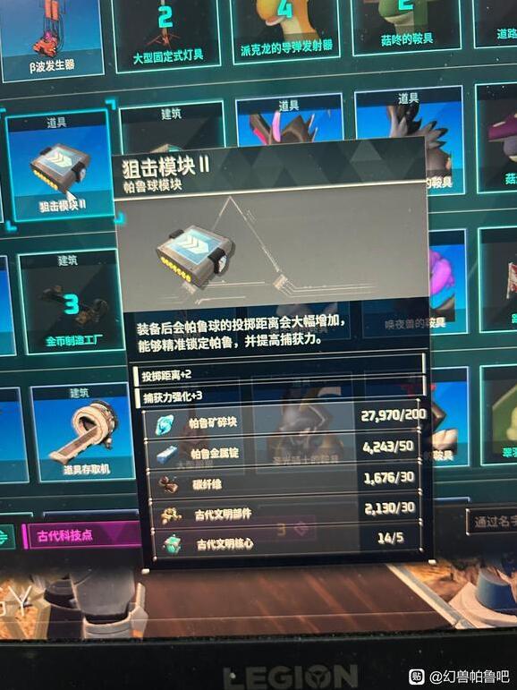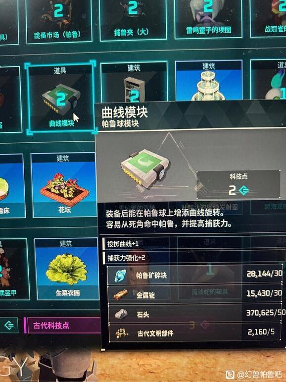 1、11级的新科技重量模块。现在人物面板有一个帕鲁球模块可以安装