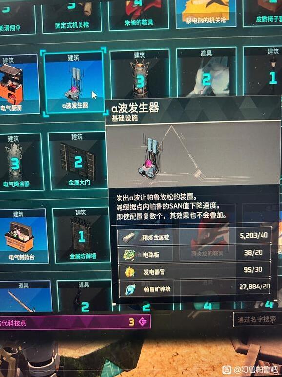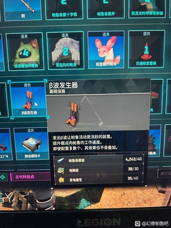 15、α波发生器,降低家里帕鲁掉SAN的速度,β波发生器,提升家里帕鲁的工作速度,伟大无需多言