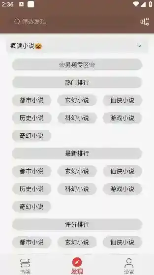 书源更新成功后点击底部的发现可以看到许多的书源
