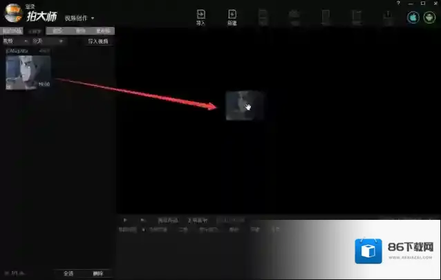3、添加好后我们将其拖动到拍大师右边的界面中,如下图所示: