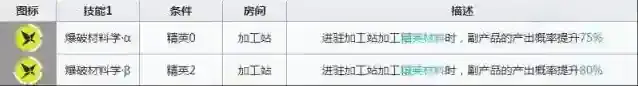 陨星的基建技能还算不错,毕竟是80%的副产品概率,在加工站还是不错的,不像很多其他干员,基建是纯粹的冷板凳,陨星还是经常有上班的机会的。