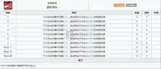 陨星的1技能,相信大家都看过一个gif吧,那就是陨星一炮干掉大片大斧,但是其实那是在很多拐的辅助下才达成的效果,其实说到底,如果其他干员也配上那么多拐的话,表现效果也是不会差的。但是陨星的主要输出技能还是1技能,优点在于巨大的溅射范围和尚可的技能倍率,可以说在2个技能中最值得专精的还是1技能,不过就像一听小编说的,对单输出不要指望陨星,陨星可以达成群体输出的职责就可以了。