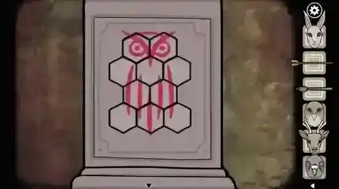 25.获得5个面具后进入上方的门,完成左边的猫头鹰拼图,得到黑方块。