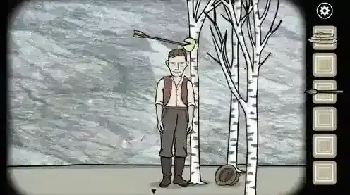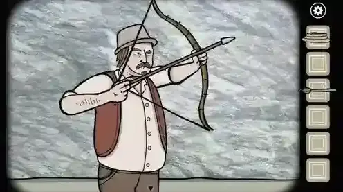 7.到石室外,将弓箭交给左侧的大叔,然后向上提高角度三次再进行射箭,射下弟弟的帽子。