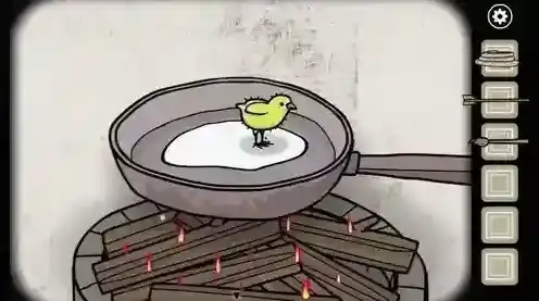 11.到树林3进入房屋,用蜡烛点燃火柴,将鸡蛋放在锅里煮,孵化出小鸡。