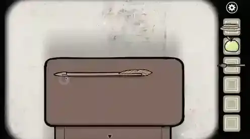 2.进入石室,在桌子上拿走苹果和刷子,将羽毛放到木棍上。