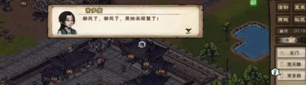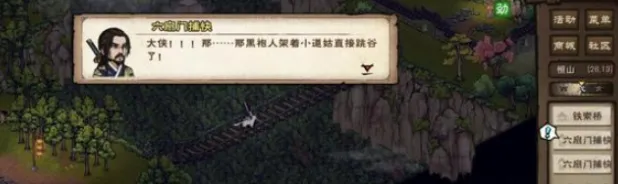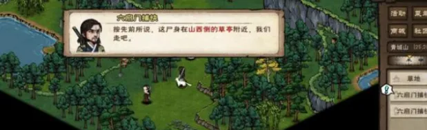 1.在(28,8)触发剧情,去(29,7)查看尸体,去(29,8)对话六扇门捕快,获得「案卷」,再去(28,8)对话六扇门捕快。