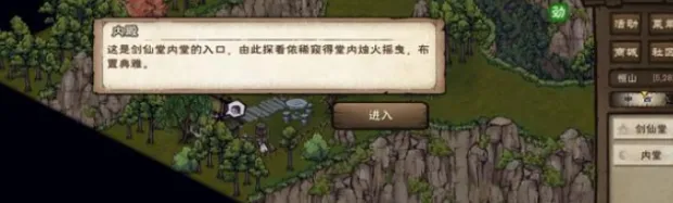 8.从(5,28)进入剑仙堂,在(6,2)(7,2)(5,3)(5,4)查看,去(7,2)对话祝知微,再去(6,2)对话六扇门捕快,离开。