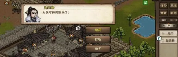 4.在(21,21)对话六扇门捕快,去(20,13)对话楚天麟,再向(20,31)罗有成打听「澄心散」,支付200两获得「澄心散」。