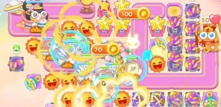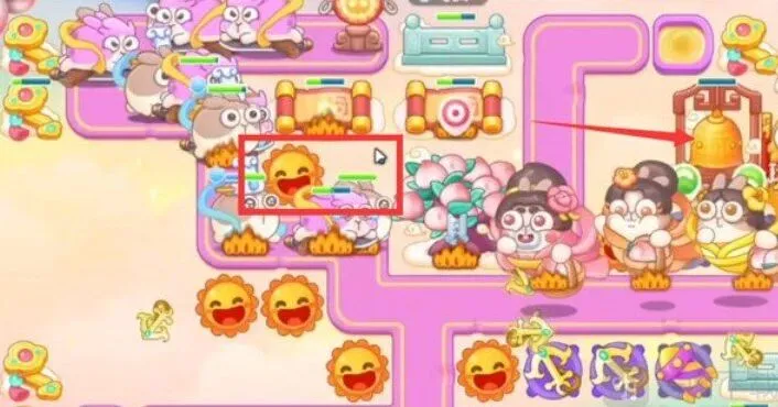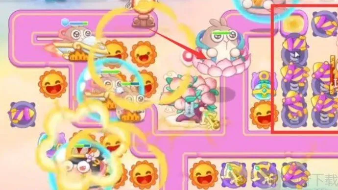 8.在靠近萝卜处的位置多放烟花塔,尽量升级至满级,这里需要注意莲花兔,避免伤害被他吃掉,及时锁定飞行兔;