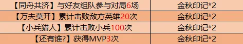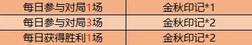 活动期间,通过每日对局总共可获得金秋印记*45。