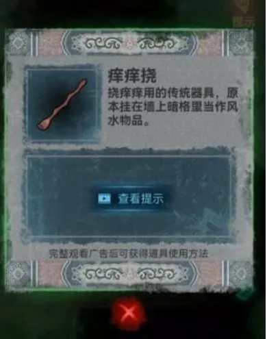 4、大家来到地下室的右侧第三层书架上可以找到提醒,大家点击墙面得到痒痒挠。