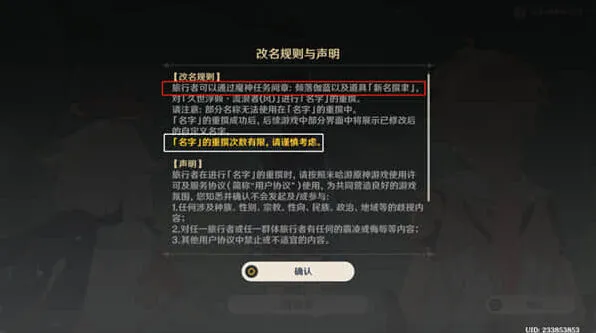 「名字」的重撰(zhuan)次数有限,请谨慎考虑