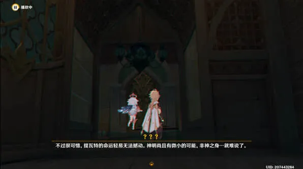 以及、突然在旅行者脑海中对话的人,类似于草神的能力,明示提瓦特的命运不会因为改变世界树数据库而改变,神明都无法撼动