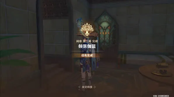 对话结束,完成任务「间章·第三幕·倾落伽蓝」